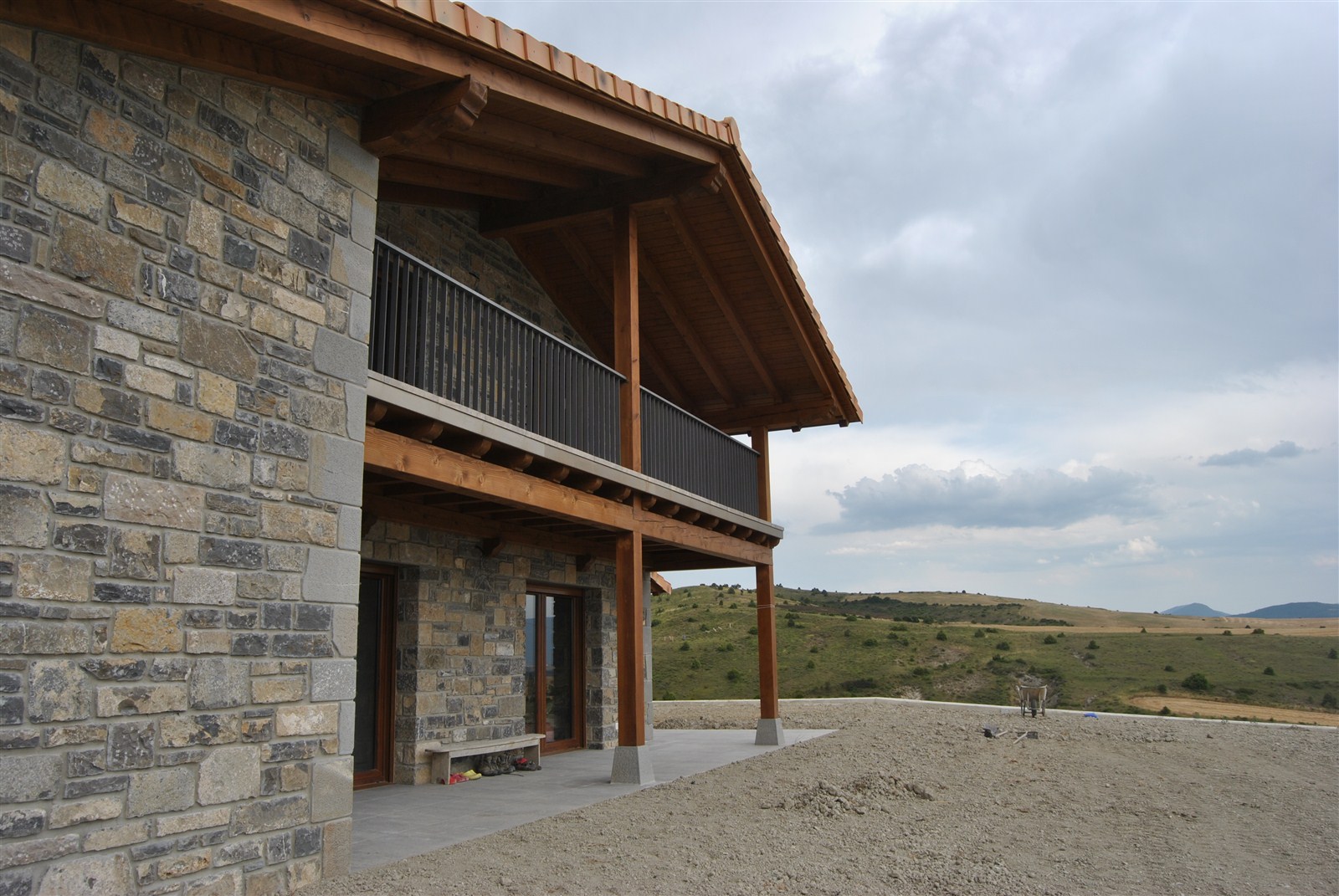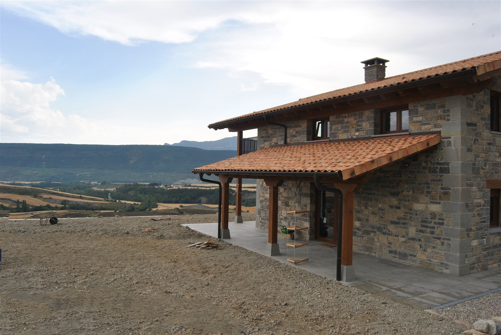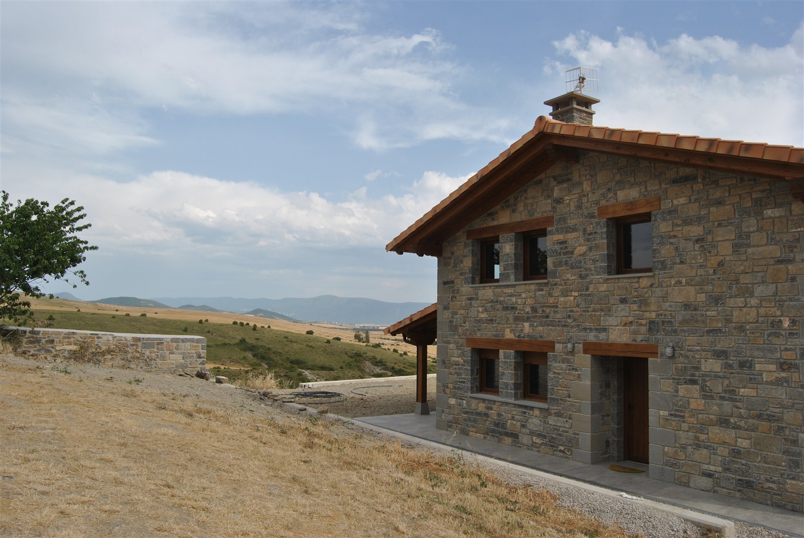 En un emplazamiento privilegiado, que domina el valle de Lónguida en toda su amplitud, se edifica una vivienda unifamiliar cómoda y sencilla, de piedra en el exterior y madera en el interior. Su volumetria encaja en el conjunto del núcleo rural.