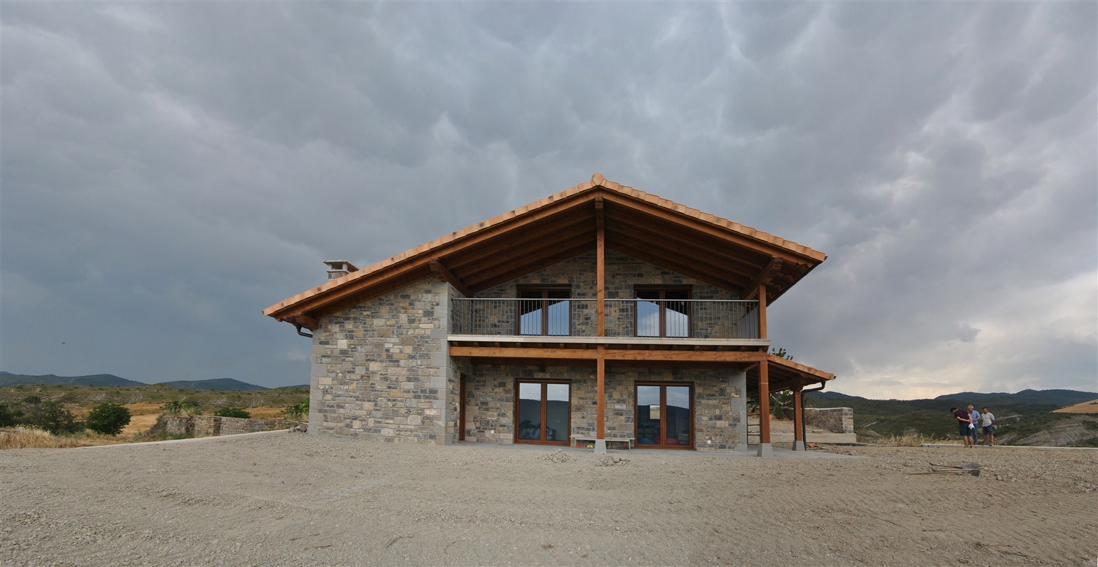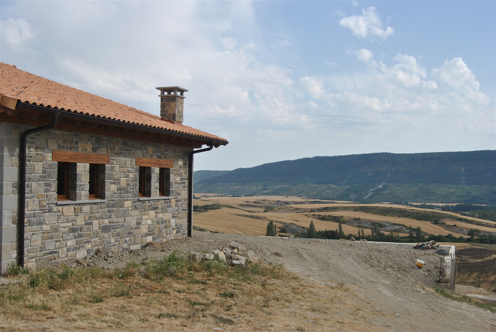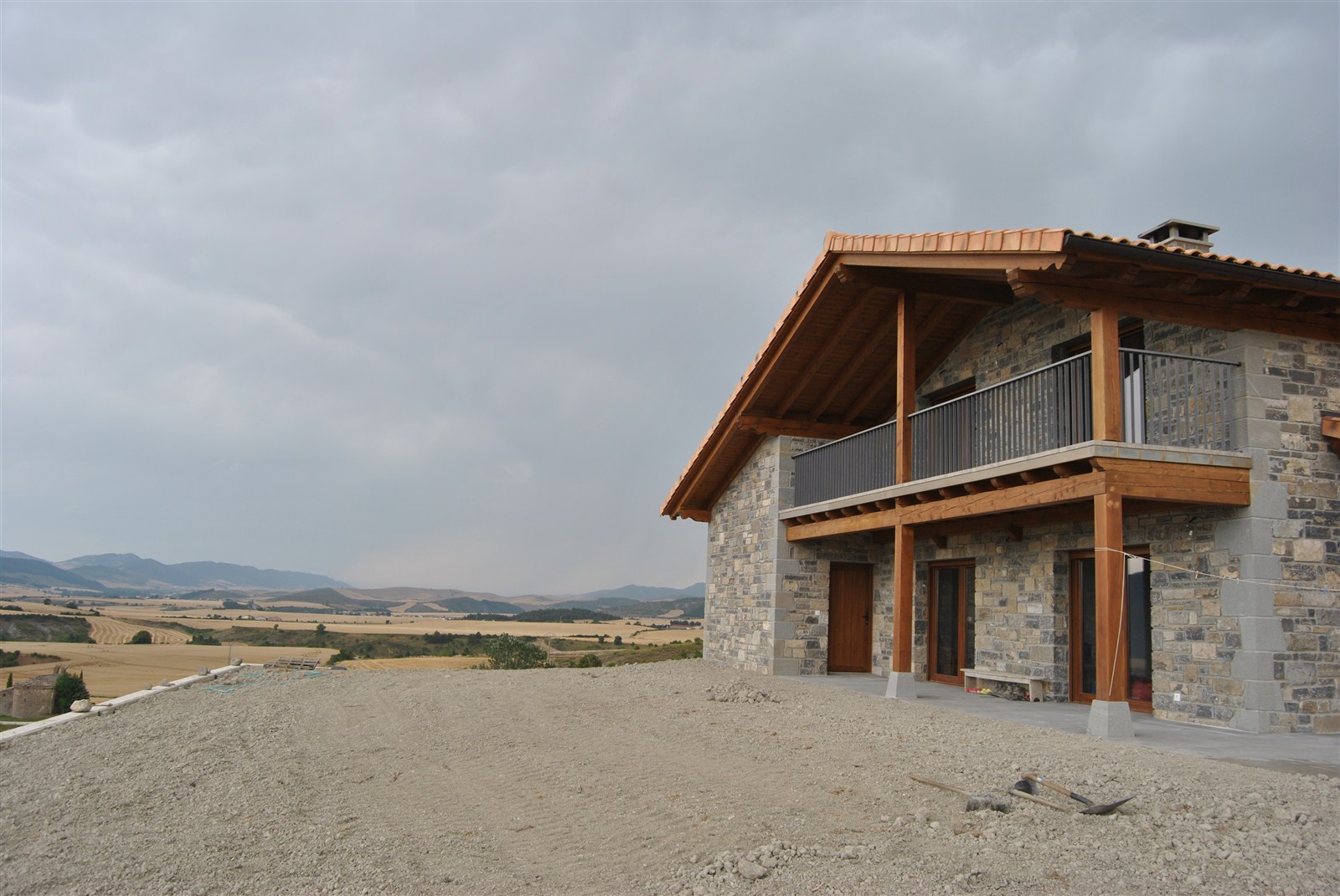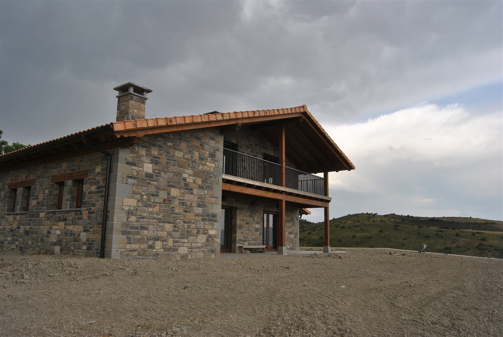 En un emplazamiento privilegiado, que domina el valle de Lónguida en toda su amplitud, se edifica una vivienda unifamiliar cómoda y sencilla, de piedra en el exterior y madera en el interior. Su volumetria encaja en el conjunto del núcleo rural.